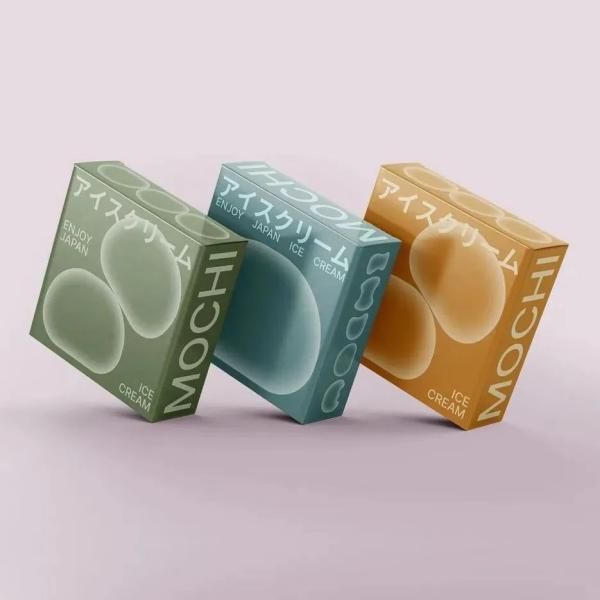 日本麻薯冰淇淋包装设计,该款产品以Q弹的麻薯面皮裹着爽口的冰激凌夹心,轻咬一口,醇厚地道的糯米香随即扑鼻而来。